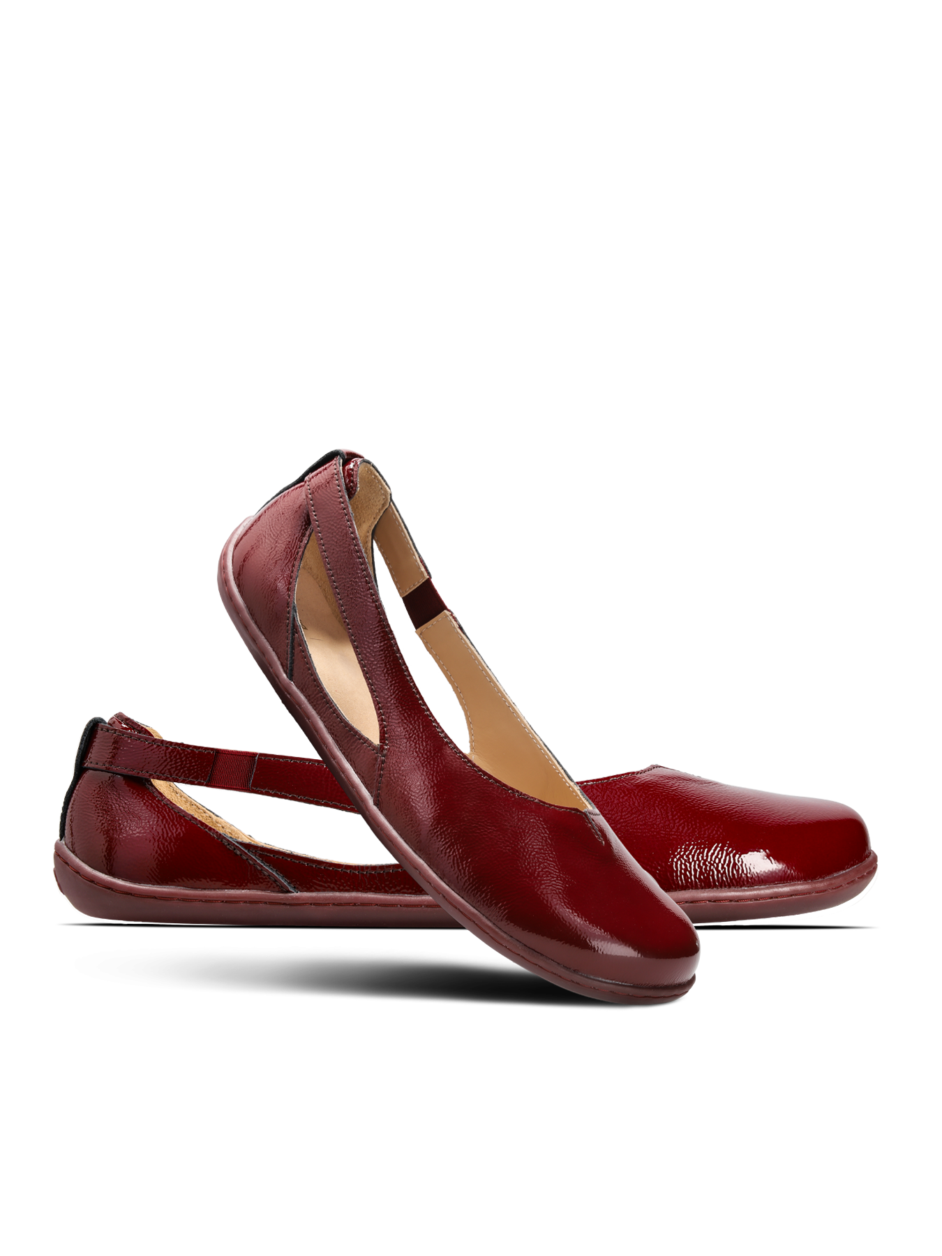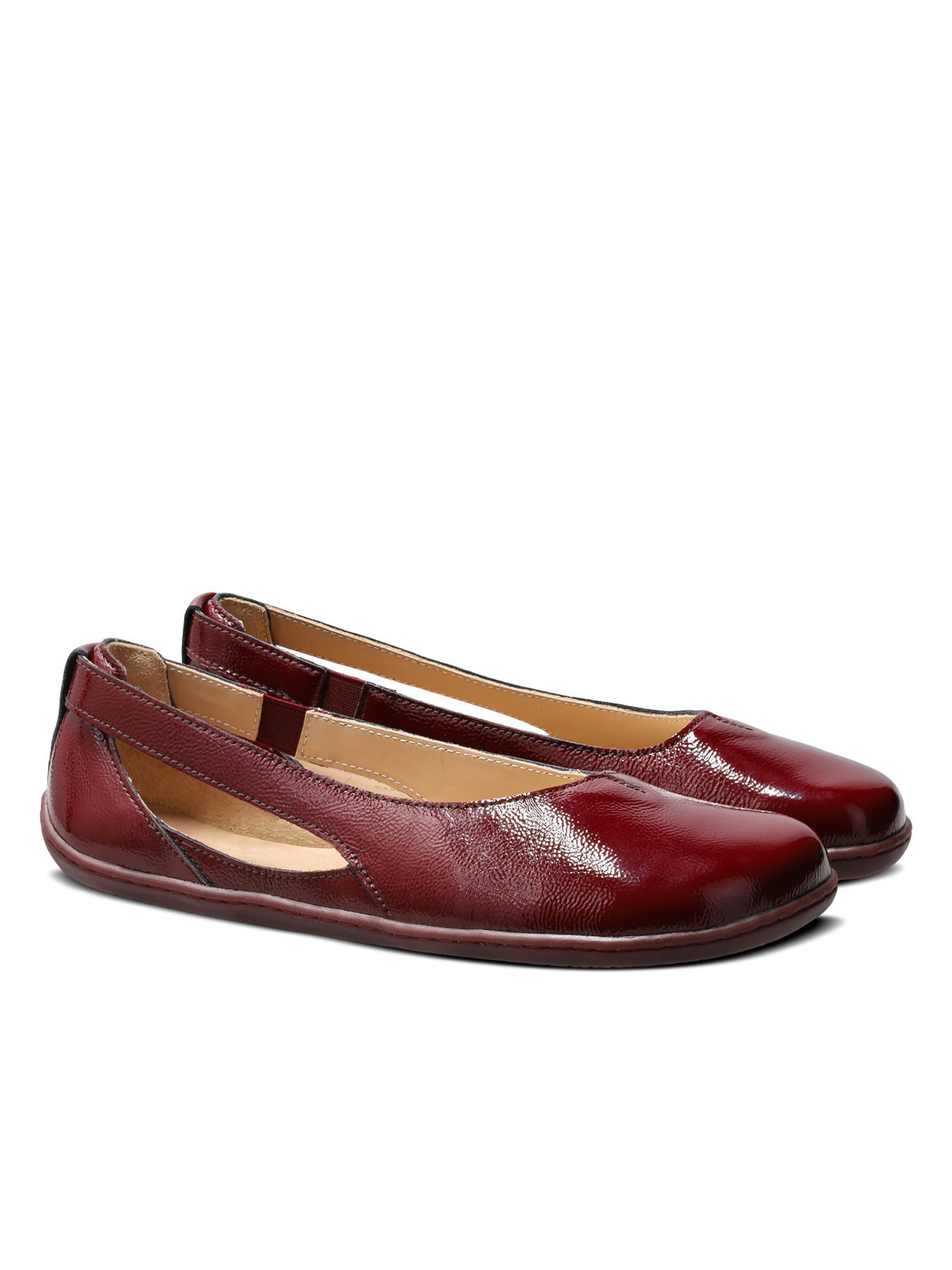 A refined cut on the side of the shoe creates an elegant silhouette and makes the ballet flats more breathable. The glossy leather finish looks luxurious and stands out even in a simple monochromatic outfit. These barefoot ballet flats are an ideal choice for work, celebrations and everyday wear.
